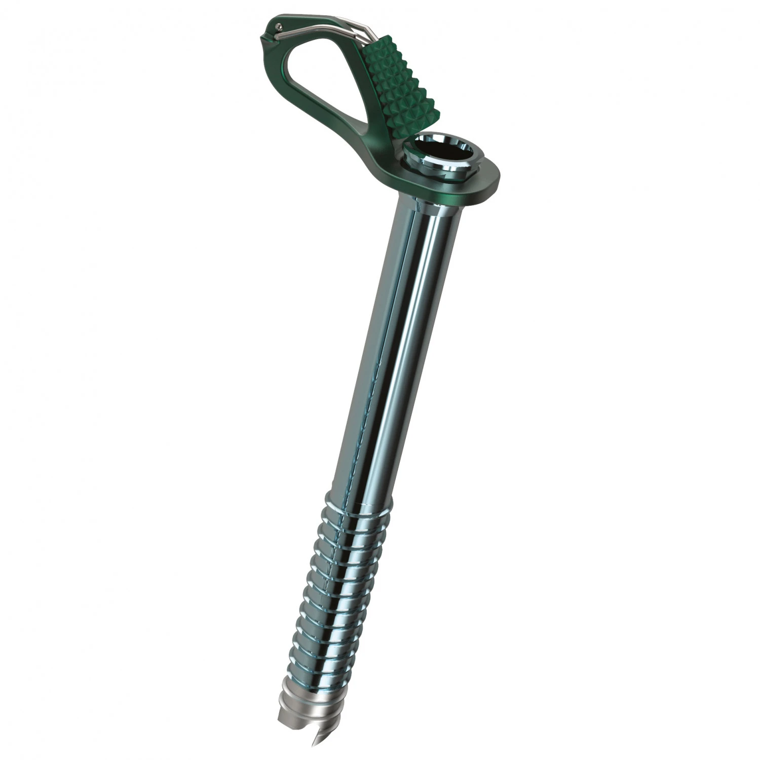 Grund für relativ leichte Gewicht ist die Konstruktion der Eisschraube mit einem Aluminiumkörper und einer Stahlspitze. Mit der einfachen 3-Zahn-Spitze kann man die Eisschraube leicht platzieren und dank der integrierten Kurbel einfach hineindrehen.